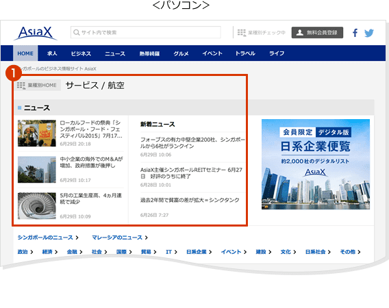 シンガポールのビジネス情報サイト AsiaX業種別でチェック