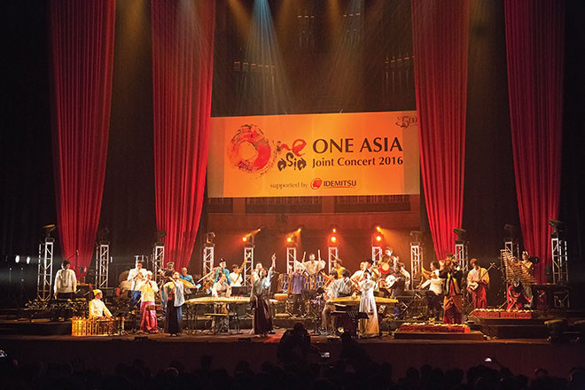 日本を代表する和楽器ユニット「AUNJクラシック・オーケストラ」が、アジア各国の伝統楽器奏者たちと音楽を奏でる音楽文化交流プロジェクト。シンガポールをはじめベトナムなど、ASEAN10ヵ国全ての国から奏者が参加、音楽を通じてそれぞれの国で大切に守られてきた伝統楽器の魅力を紹介する、シンガポール初上陸のイベントとなりました。当日のステージには各国の演奏者が民族衣装で登場、それぞれの個性があふれる生き生きとしたパフォーマンスを行いました。観客との掛け合いなども行いながらステージは進み、最後は全員でオリジナル曲「ONEASIA」を合奏、それぞれの音色を持つ楽器が一体となり、調和しながら会場を包み込む感動のフィナーレで幕を閉じました。