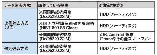 一般的には下記2つのデータ消去方式を利用してデータ消去を行います。