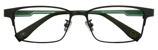 フロント・モダン(メガネの耳にかける部分)にはマットなモスグリーン、テンプルの鮮やかな緑で量産型ザクの機体カラーを再現。モダン内側には、ジオン公国軍のメタルロゴを配置し、サイドには型式番号【MS-06】のレーザー刻印が施されています。