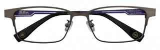 フロントにはマットな濃いグレー、モダン(メガネの耳にかける部分)にはマットなブラック、テンプルの鮮やかな紫でドムの機体カラーを再現。モダン内側には、ジオン公国軍のメタルロゴを配置し、サイドには型式番号【MS-09】のレーザー刻印が施されています。