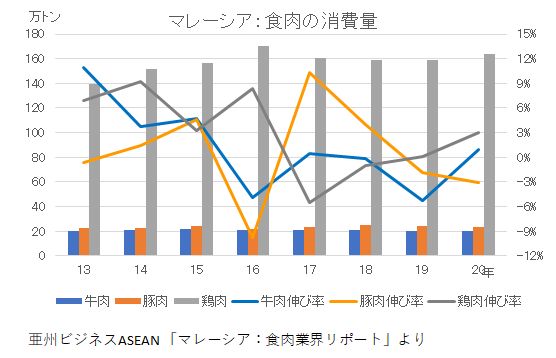 前掲のニュース「マレーシア:鶏肉輸出を事実上禁止」に関しては、イスラム圏の同国で鶏肉が圧倒的に多く食べられているという背景を補足しておく必要があろう。イスラム教徒にとって豚肉を食することダブ―であるため、食肉のほとんどが鶏肉で占められる構図だ。