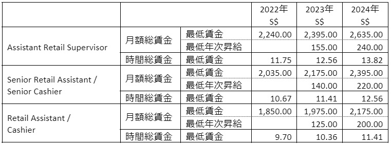 同じく2022年9月1日から、外国人の雇用について就労ビザ(エンプロイメントパス・Sパス・ワークパーミット)の新規発行または更新を申請する全ての事業主は、業種を問わず、ローカル従業員に対し、以下の賃金を支給しなければなりません。