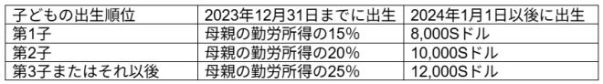 なお、2023年12月31日までに出生した子どもについて、ワーキングマザーに適用される子どもの扶養控除は、QCRとWMCRを合わせて、子ども1人につき1賦課年度5万Sドルが上限とされています。また、納税者1人に適用される所得控除は、全ての所得控除を合計して1賦課年度8万Sドルが上限とされています。