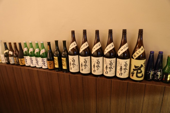 自分たちで実際に飲み、味わいはもちろん、コストパフォーマンスなども考えながら選んだという日本酒のリストは、シンガポールには初登場という「菊水の辛口」(新潟県)など約40種類。焼酎や女性に人気の梅酒、ゆず酒も豊富に揃う。