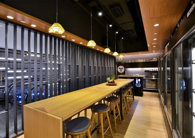 オーチャードエリアのショウセンター4階、「Ippudo SG @ Shaw Centre」店の向かいにオープンしたBAR IPPUDO。店の中央にテーブルが置かれ、席数は12とこぢんまりとした雰囲気。シンガポールでは珍しく生ビールのように生酒を注ぐサーバー備える。