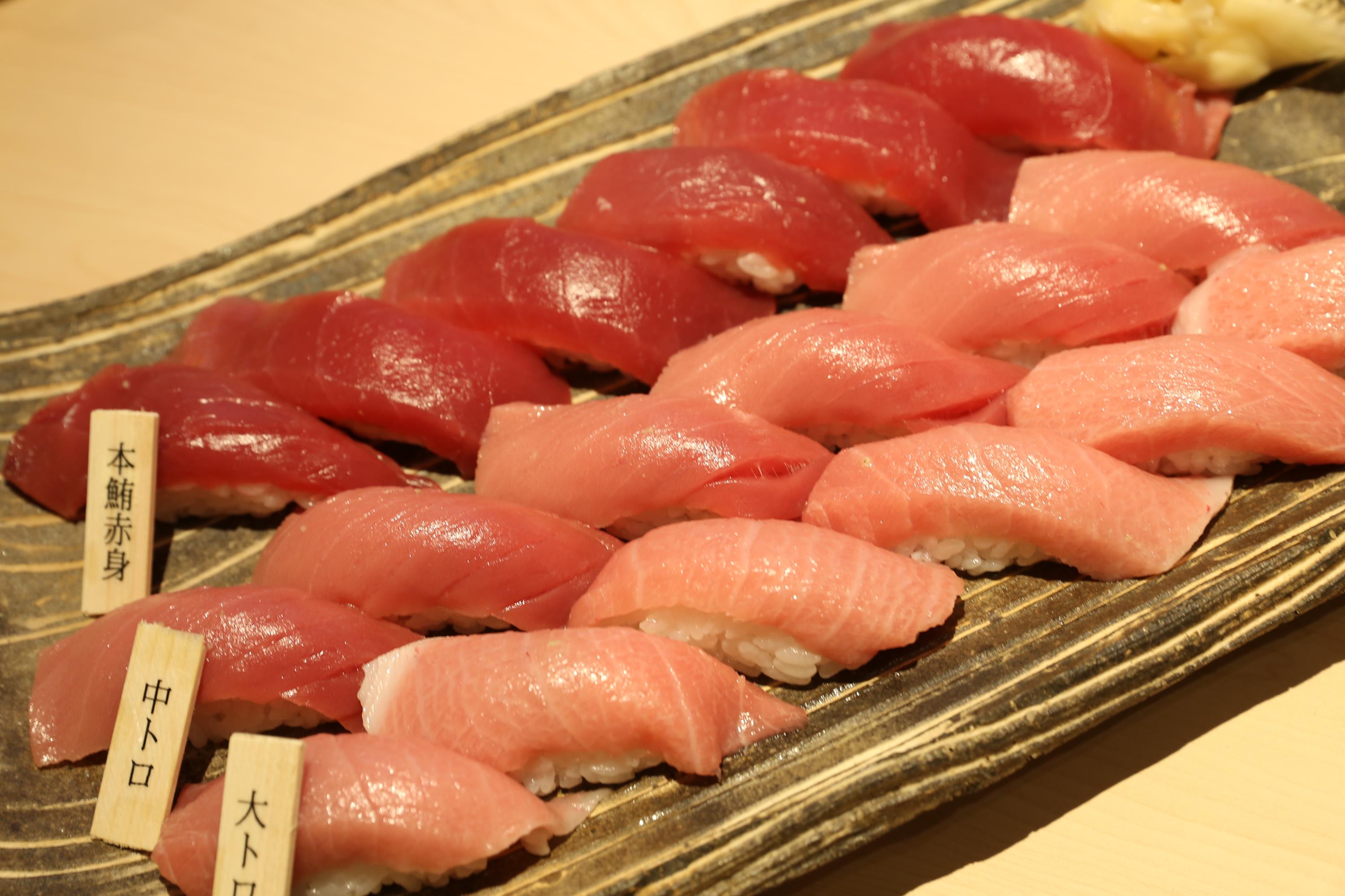 老舗のマグロ問屋を母体に持ち、東京や神奈川などの店舗では行列ができることでも知られる人気寿司店。日本有数のマグロの水揚げ量を誇る神奈川県・三浦三崎港で揚がった高品質なマグロを、マイナス60度で冷凍保存し空輸して提供するから鮮度はバツグン! 大トロ、中トロ、本鮪赤身の3種が揃った刺身(38Sドル)や寿司(28Sドル)、マグロのカマ(34Sドル)といった、マグロ尽くしのメニューをぜひ堪能してほしい。サーモンやはまちなどの刺身も、新鮮かつ高品質なものが日本から届いているので、こちらもチェックしよう。