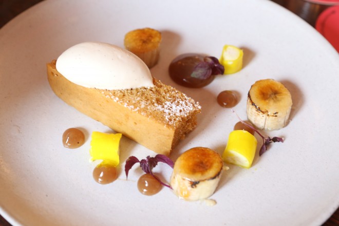 皮を香ばしく焼いたアヒル肉とパッションフルーツのカレー「Crispy duck curry with cauliflower and passion fruit 」(27Sドル)も忘れずにオーダーしてほしい一品。アヒル肉はアジアのスパイスであらかじめマリネされ、カレーと絶妙なハーモニーを奏でる。トッピングとして乗っている海老煎餅が心地よいアクセントとなっている。
