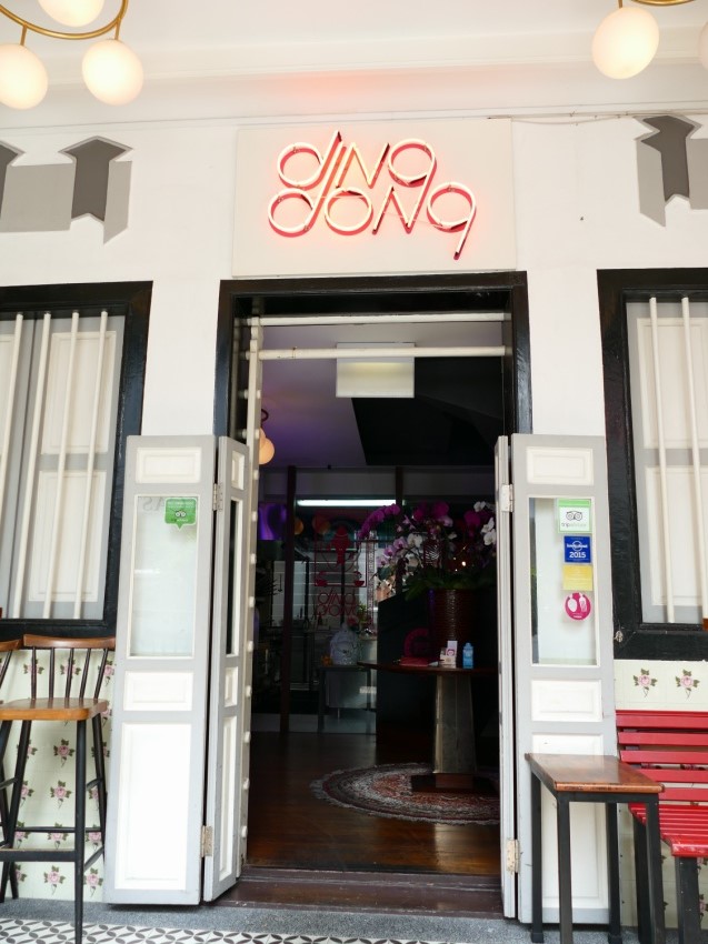 チャイナタウンのメインストリートから路地裏に入ると雰囲気は一変する。ショップハウスをリノベーションしたスタイルで多国籍なレストランやバーが連なるエリアは歩いているだけでもワクワクする。ディン・ドンはそのような雰囲気の中に溶け込む懐かしさと新しさが同居するアジアンキュイジーヌのレストランだ。