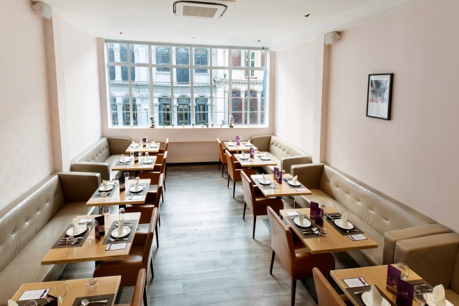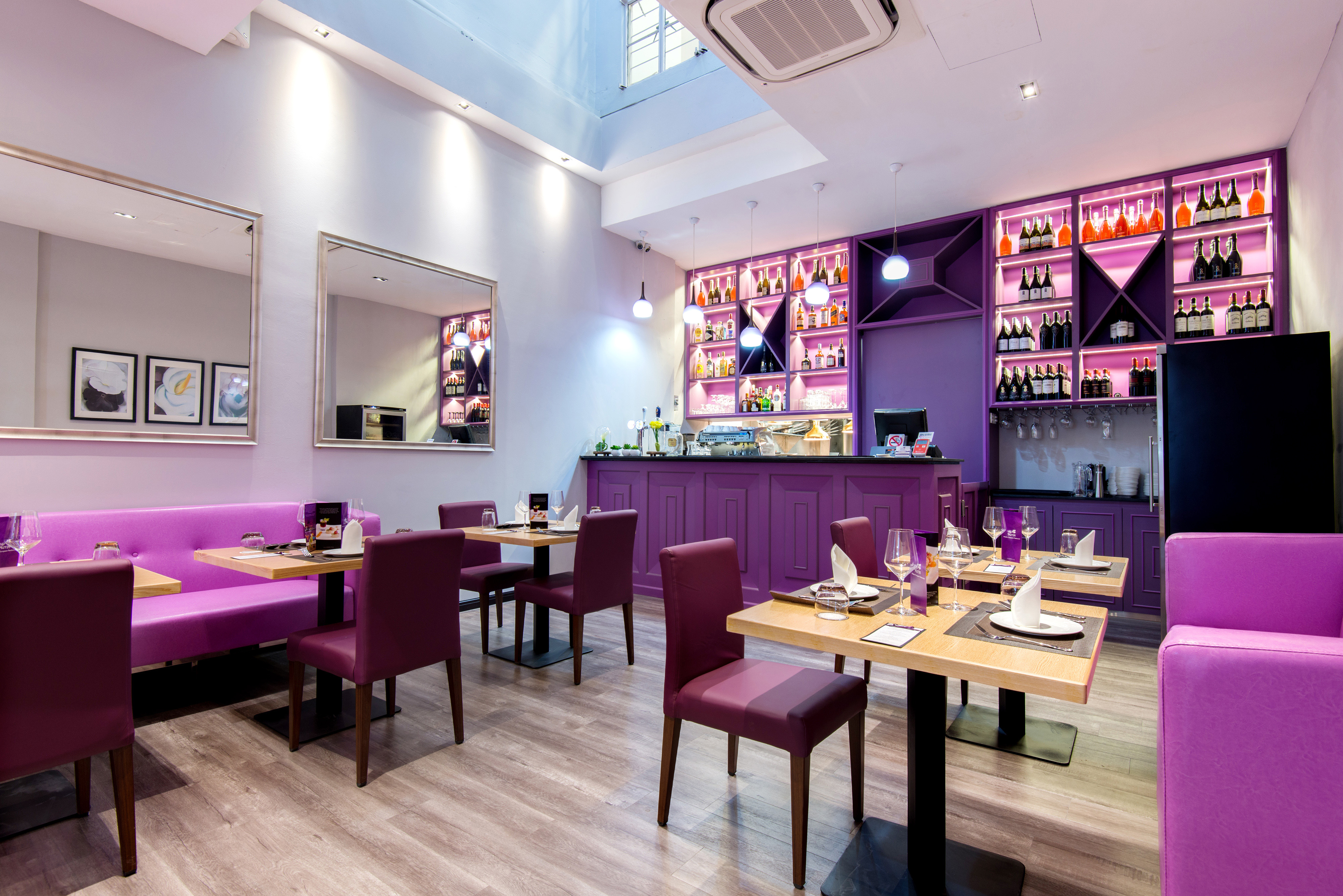 MRTタンジョン・パガー(Tanjong Pagar)駅からほど近いショップハウスが軒を連ねるトラスストリート(Tras Street)の一角。一歩入ると紫色のインテリアが刺激的なスタイリッシュな空間が広がる。