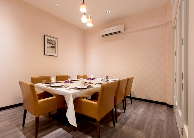 ランチS$32+、ディナーS$48+からとコース料理としてはリーズナブルな設定。1階は女子会にぴったりな雰囲気だが、2階は落ち着いたアースカラーでまとめられ、仕事の打ち合わせに訪れるビジネスマンも多いという。セミフォーマルな接待にも利用可能な個室もあり、プライベート、ビジネス両方のシーンで目でも舌でも楽しめる創作料理の数々を堪能できる。