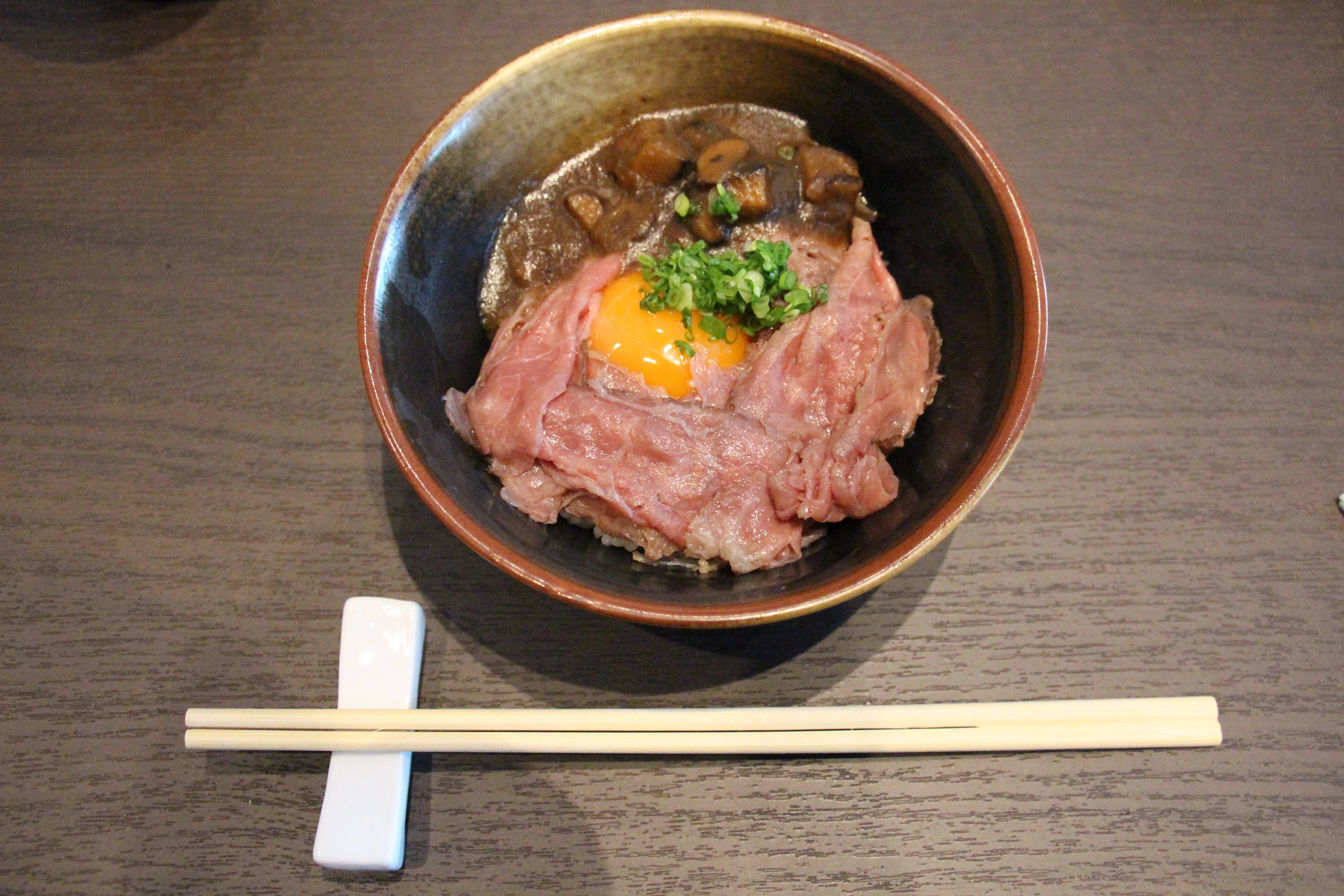ランチセットメニューも豊富。豚丼、すき焼き丼、焼肉丼、石焼ビビンパなどがサラダとスープ付きで18ドル~。オススメはローストビーフ丼(35ドル)で、シェフ特製の肉汁、温泉たまごとともに芳醇な味わいを堪能できる。