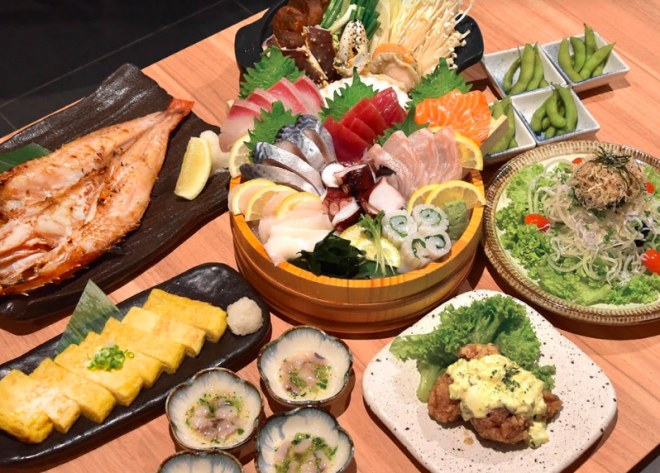 一歩店に入ると、まるで日本の居酒屋に瞬間移動したような錯覚に捉われてしまう。日本酒の品揃えが多く、常に80種類以上の銘柄がから選べるのは日本酒ファンには嬉しい限り。そんな同店の一押しメニューは飲み放題コース。飲み放題90分の「いざかやコース」(S$70nett)のメニューは、枝豆、たこわさび、しらすの大根サラダ、お刺身5点盛り、チキン南蛮、出汁巻き卵、ホッケの開き、チゲ鍋、雑炊の9品に日本酒(冷・温)、ビール、ハイボール、焼酎、サワーなどの飲み放題が含まれる。飲み放題50分込みの「ににんがしコース」(S$100nett)はお刺身が9点盛りとなり、焼き魚がキンキ、鍋が北海道産タラバガニを使った海鮮鍋となる。また、アラカルトメニューに飲み放題を付けることも可能で90分(S$35++)、150分(S$55++)とリーズナブルな価格設定だ。