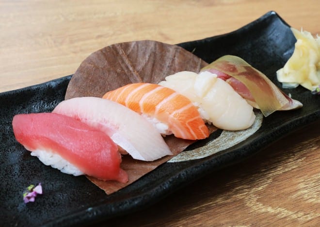 すしは5種セットが鯛、メカジキ、マグロ、甘エビ、鮭の盛り合わせで9Sドルから。その上はマグロ、イクラ、カンパチ、穴子、甘エビの盛り合わせで12Sドル、ウニを含んだ19Sドル、さらに中トロ、シマアジ、ホタテが入る23Sドルのセットと、実にお手頃な価格に設定されている。かといっていわゆる「なんちゃって」なすしではなく、新鮮なネタを使い、経験豊富なシェフがつくる本格的な握りずし。