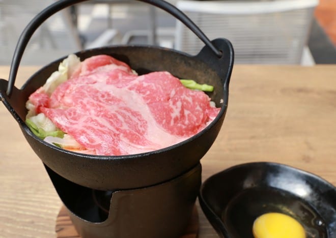和牛すき焼きセットは25Sドル。ちょっと贅沢に1人用鍋はいかが。