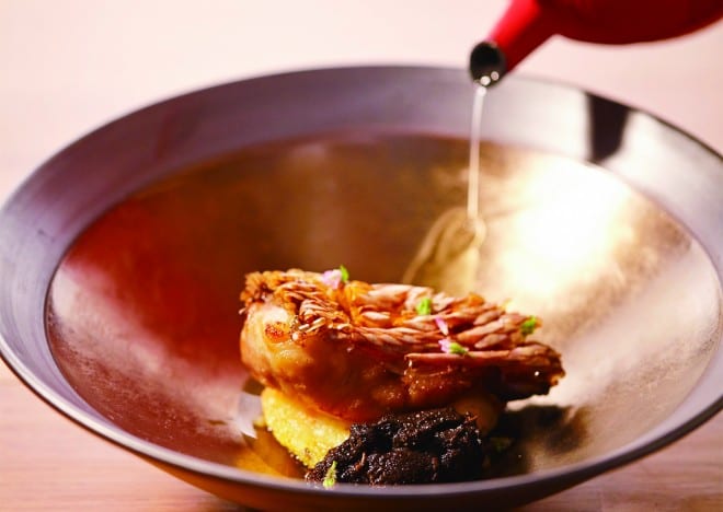 加納良一シェフが腕を振るう食材を活かしたジャパニーズフレンチは、伝統と新しさが融合した料理。見た目も美しく、また客を楽しませる工夫も盛り込まれている。例えば、炙りほたては、火がついたままテーブルへ出され、出汁ソースのジュッっという音が食欲をそそるといった具合だ。