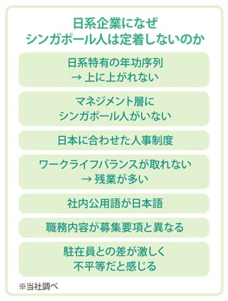 当社のお客様からなかなかシンガポール人が定着せず、試用期間中に辞めてしまうという相談を受けることが多いのですが、定着しない理由を考えてみましょう。