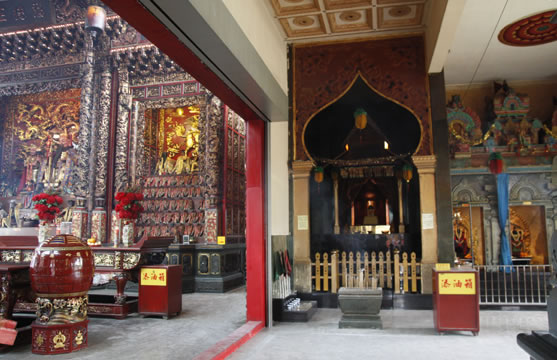 外観は中国寺院の様相で寺院名も中国語で「洛阳大伯公宮」とあり、道教に仏教も共存、その寺院の中に回教やヒンズー教が混在しているとは想像もつきません。