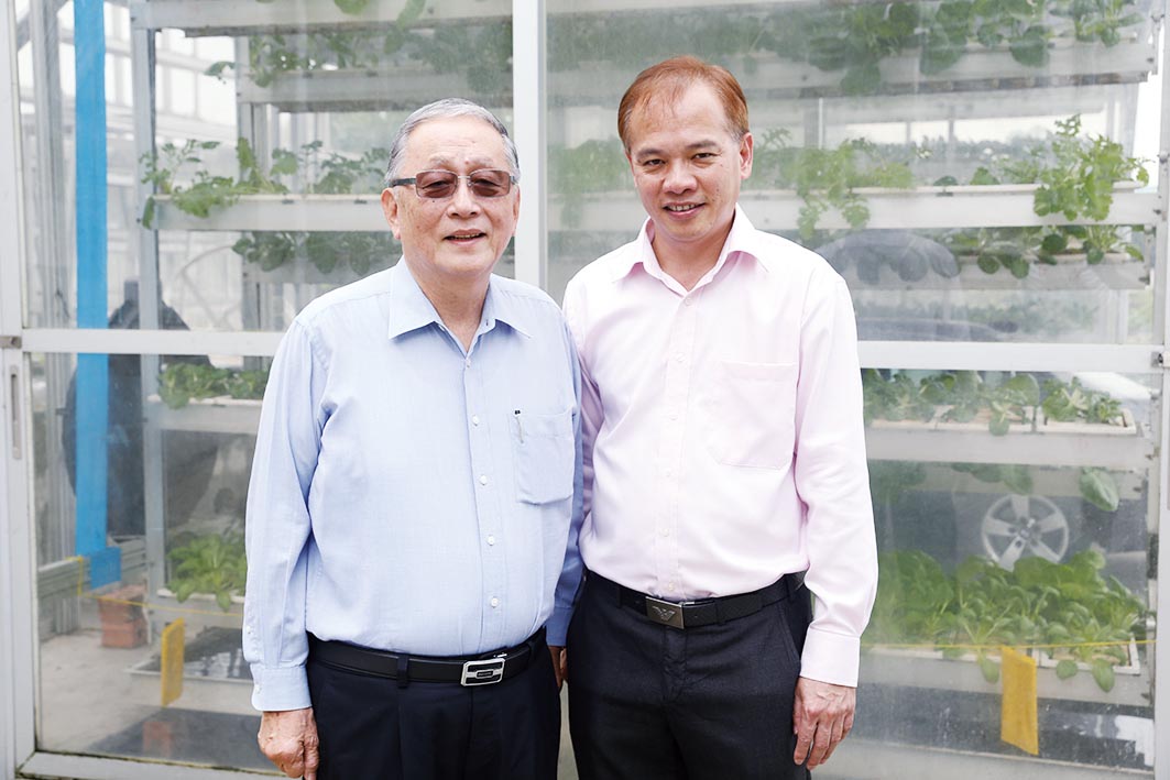 2011年に設立されたスカイ・グリーンズは、長年アルミニウム構造のエンジニアを務めていたジャックさんが、定年退職後の老後生活はのんびりと農業を営みたいという夢を持ったのが始まりです。農作業で体をしっかりと動かしながら野菜中心の食生活で健康を維持するという理想を思い描いたものの、土地が限られたシンガポールで農業を営むのは難しいという問題に直面します。そこで発揮されたのが、ジャックさんのエンジニアとしての知識と経験。いかに効率よく、安定した生産を実現するかを試行錯誤した結果、「土地がないなら、土地を有効活用すればいい」と、立体式で野菜を栽培するというアイデアが生まれました。2009年にそのシステム開発が始まり、2010年には試作模型が完成し、農食品獣医庁(AVA, Agri-Food and Veterinary Authority of Singapore)と共同で試験を実施。そして世界初となる低炭素化を実現した、水圧式ポンプ搭載の立体式野菜栽培システムが完成しました。