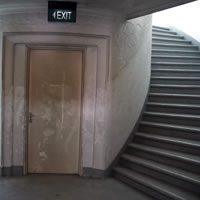 現在旧カラン飛行場は、5月15日まで開催中のシンガポール・ビエンナーレ2011の会場のひとつになっています。ターミナルビルはもちろん、正面玄関前の細長い庭園や、かつて各航空会社のオフィスが入っていたウィング棟、格納庫などに世界各国のアーティストによる現代美術作品や、地元シンガポールの小中学生が描いた絵などが展示されています。