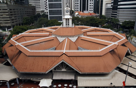 金融街の中心部に八角形の屋根を擁する「ラオ・パサ・フェスティバル・マーケット」があります。ここはその昔「ウェット・マーケット」と呼ばれる魚市場でした。前身はテロック・アヤ(Telok Ayer)マーケットで、シンガポール川南にあったのですが、スタンフォード・ラッフルズが1822年にマーケット・ストリートの南端に移動させたそうです。そこは中国人やインド人の移民が船を降りてシンガポールに上陸する場所でもありました。魚を卸す場所としては便利だったのでしょう。そして1838年、シンガポールの多くの主要な建物を手掛けた建築家、ジョージ・コールマン(George Coleman)が八角形の屋根、入口には洒落た柱を配した建物を市場のためにデザインしました。これは周囲の環境を配慮し、またいずれは中心街として発展する場所にランドマークとなるような建築物を建てたかったからだといいます。1894年にはさらにジェームス・マックリッチー(James MacRitchie)が八角形の構造はそのままに、ヴィクトリア調のアイアンフレームを採り入れインテリアを一新しました。建築材はスコットランドのグラスゴーからわざわざ運んだものです。魚市場としてはなんとも贅沢な造りだったと言えます。