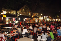 シンガポールの食べ物の歴史をホーカー(屋台)抜きに語ることはできません。ゴザの上にお菓子や乾物を並べたり、小さな台の上にコンロを置いて煮炊きしたり、あるいは自転車や人力車で手作りの食べ物を運んだりしていた人々が、やがて屋台や仮店舗を設置し、そうした簡易食堂が一箇所に集まった場所“Village”がホーカー・センターと呼ばれるようになりました。今から20数年前まではそんな屋外のホーカー・センターが島のあちこちに点在し、裸電球の下で屋台食を食べる風景が日常的なものだったのです。