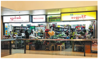 その昔、在住ミャンマー人に人気の場所はチャイナタウンのピープルズ・パークだった。1980年初め頃から、ミャンマー人向けに帰国の際のお土産に家電やバティックなどの衣類を売る店があったためだ。その頃はミャンマーの食品を売る店はなかった。それらの店がペニンシュラ・プラザに移転し、ミャンマー料理レストランがオープン。交通に便利で集まるミャンマー人も増えてきた。今ではビル内の飲食関係は、約90%がミャンマー関連の店だという。