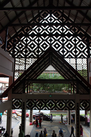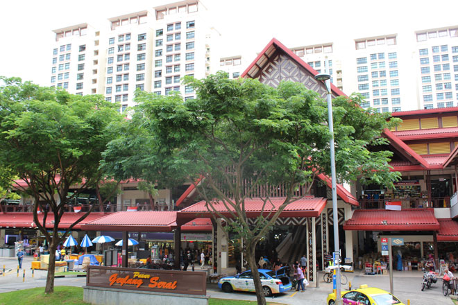 多民族が居住していたといっても、彼らはゲイラン・リバーを境に東西に分かれて暮らしていた。東側の中心は、マレー系民族。それを証明するように、エリア東部のゲイラン・セライ・マーケット・アンド・フードセンター(写真❷)には現在もマレー系屋台が多く、彼らのコミュニティ広場にもなっている。ちなみにこの建物はマレーシアの高床式建築にちなんだ、カンポン式。通風のために設けられた上部の透かしが、建物内から見るととても美しい。