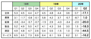 GDP成長率、第2四半期はマイナス17.1%に