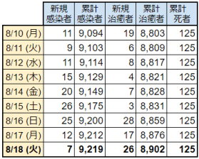 マレーシア保健省(MOH)は8月18日、新型コロナウイルス「Covid-19」の感染者数が前日から7人増えて9,219人になったと発表した。