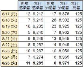 マレーシア保健省(MOH)は8月25日、新型コロナウイルス「Covid-19」の感染者数が前日から11人増えて9,285人になったと発表した。