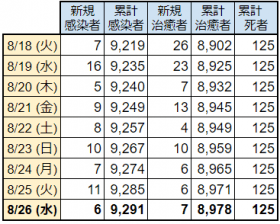 マレーシア保健省(MOH)は8月26日、新型コロナウイルス「Covid-19」の感染者数が前日から6人増えて9,291人になったと発表した。