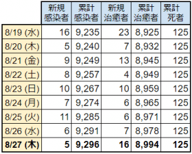 マレーシア保健省(MOH)は8月27日、新型コロナウイルス「Covid-19」の感染者数が前日から5人増えて9,296人になったと発表した。