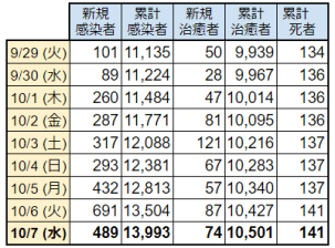 マレーシア保健省(MOH)は10月7日、新型コロナウイルス「Covid-19」の感染者数が前日から489人増えて1万3,993人になったと発表した。