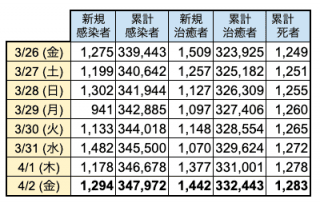 マレーシア保健省(MOH)は4月2日、新型コロナウイルス「Covid-19」の新規感染者数が前日から1,294人増加したと発表した。アクティブ感染者数は1万4,246人で、累計感染者数は34万7,972人となった。