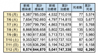 新型コロナの新規感染者数は8574人、4日ぶりに8千人台に