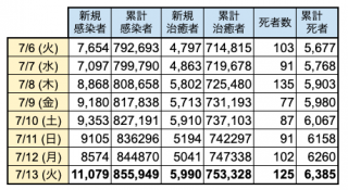 マレーシア保健省(MOH)は7月13日、新型コロナウイルス「Covid-19」の新規感染者数が1万1,079人となったと発表した。7月10日の9,353人を超え、過去最多を更新した。アクティブ感染者数は9万6,236人で、累計感染者数は85万5,949人となった。