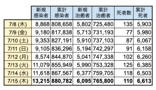 マレーシア保健省(MOH)は7月15日、新型コロナウイルス「Covid-19」の新規感染者数が1万3,215人となったと発表した。3日連続で過去最多を更新した。アクティブ感染者数は10万8,369人で、累計感染者数は88万782人となった。