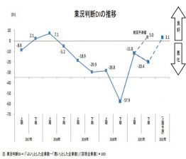 同調査は半年に1度行なっているもので、72回目となる今回は2021年9月1日から9月30日にかけて会員企業552社を対象に実施し、191社(製造業120社、非製造業71社)から回答を得た。長期間の行動規制による経済低迷や操業率低下を要因とする声が多かった。来期についてはプラス3.1への改善が予測されている。