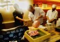 続くカッティング講習では、今回はヒレやロースといった馴染みのある部位以外の理解促進を狙って、海外ではまだあまり認識されていないもも肉に焦点を当て、食肉商社スターゼンの萩原徹久講師が、「芯玉(シンタマ)」と呼ばれる内モモと外モモの間にある希少部位のカッティング方法を披露。シンタマから切り分けた▽トモサンカク▽カメノコ▽マルカワ▽シンシン――の4つの部位について、適した調理法も含めて解説し、参加者に試食が提供された。