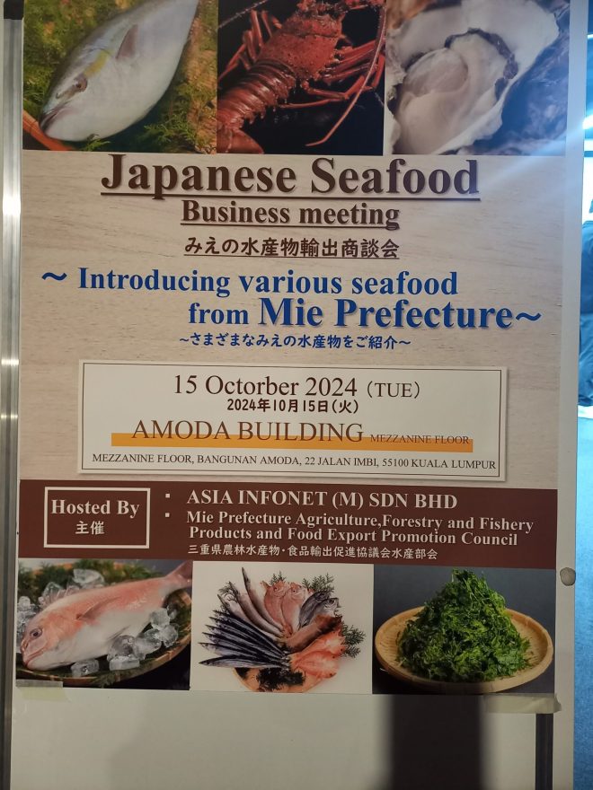 三重県は15日、クアラルンプール(KL)市内で三重県の水産物関連会社と地元バイヤーによる水産物商談会「みえの水産物輸出商談会」を開催した。