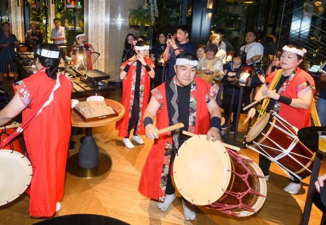 幕開けは、恒例の響屋シンガポールによる迫力のステージ。重厚なリズムが会場を一気に包み込み、続く主催者の内藤剛志氏(Media Japan代表)の挨拶から「KANPAI!」の掛け声でイベントがスタートした。